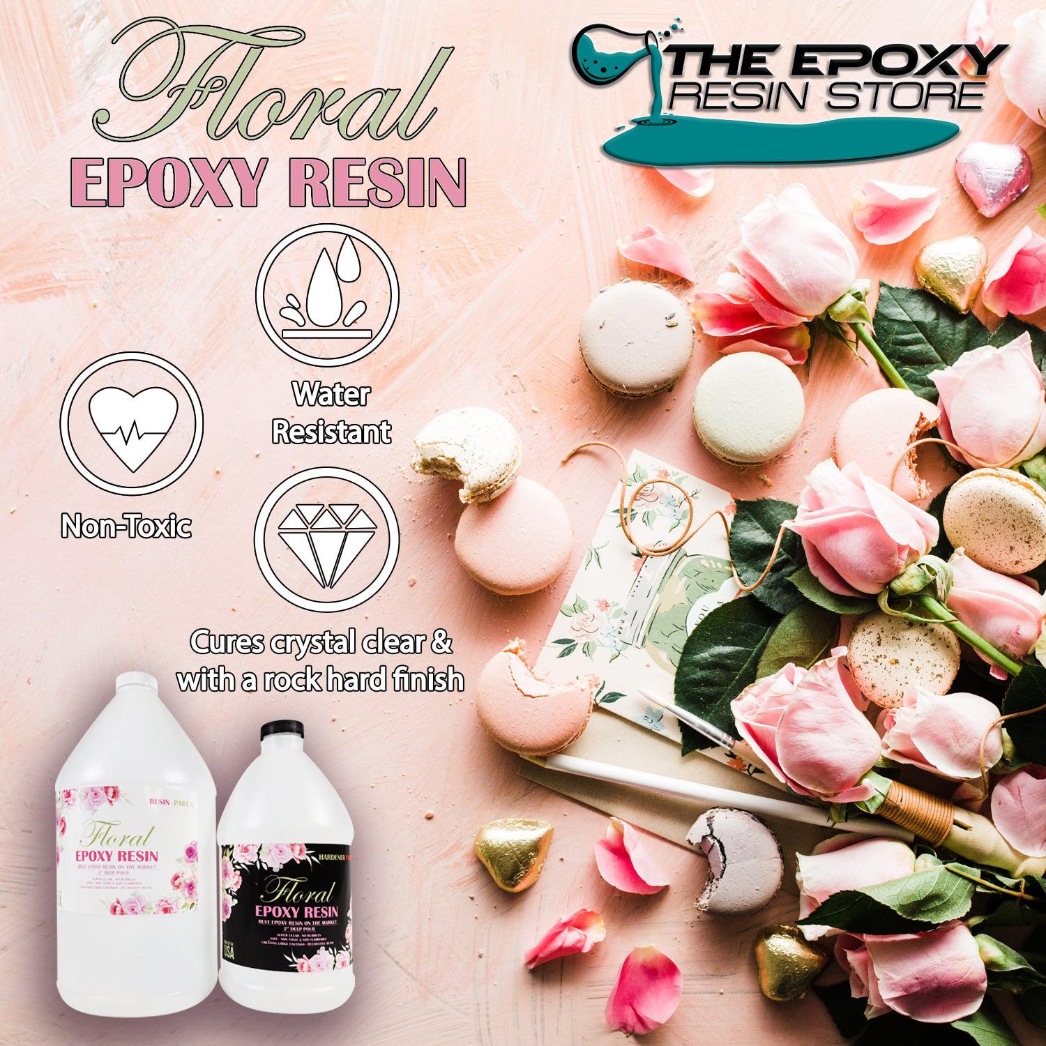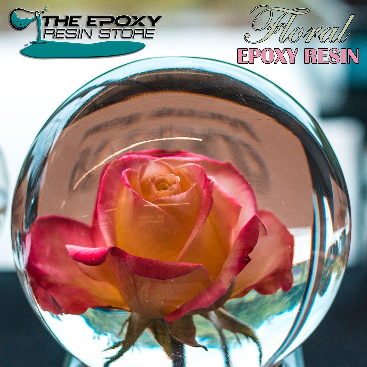 Crystal Clear Floral Epoxy Resin is Perfect for Large Castings, Thick table pours and gives simulated water appearance for floral decor.