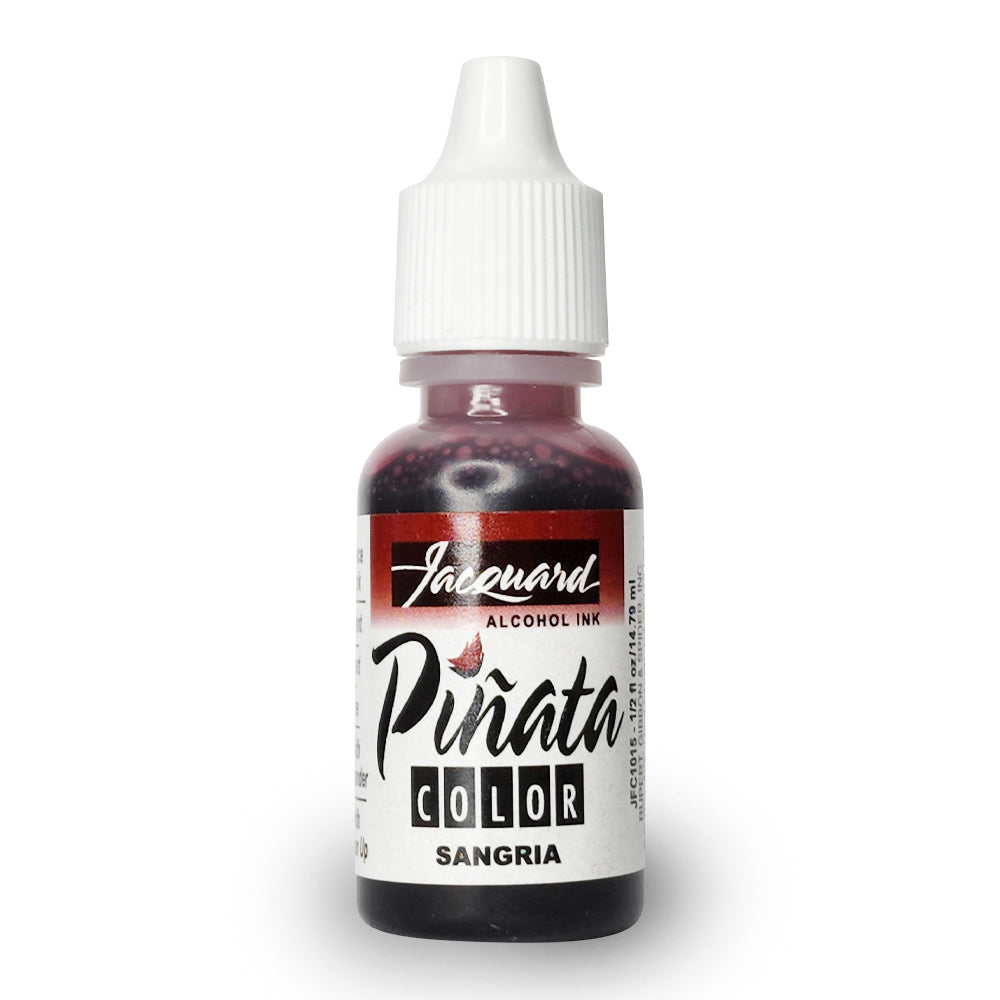 Sangria Piñata Colors are highly saturated, fast-drying alcohol inks for any hard surface, including glass, metal, plastic, ceramic, stone, leather, resin, polymer clay and more. Indelible and impervious to water.