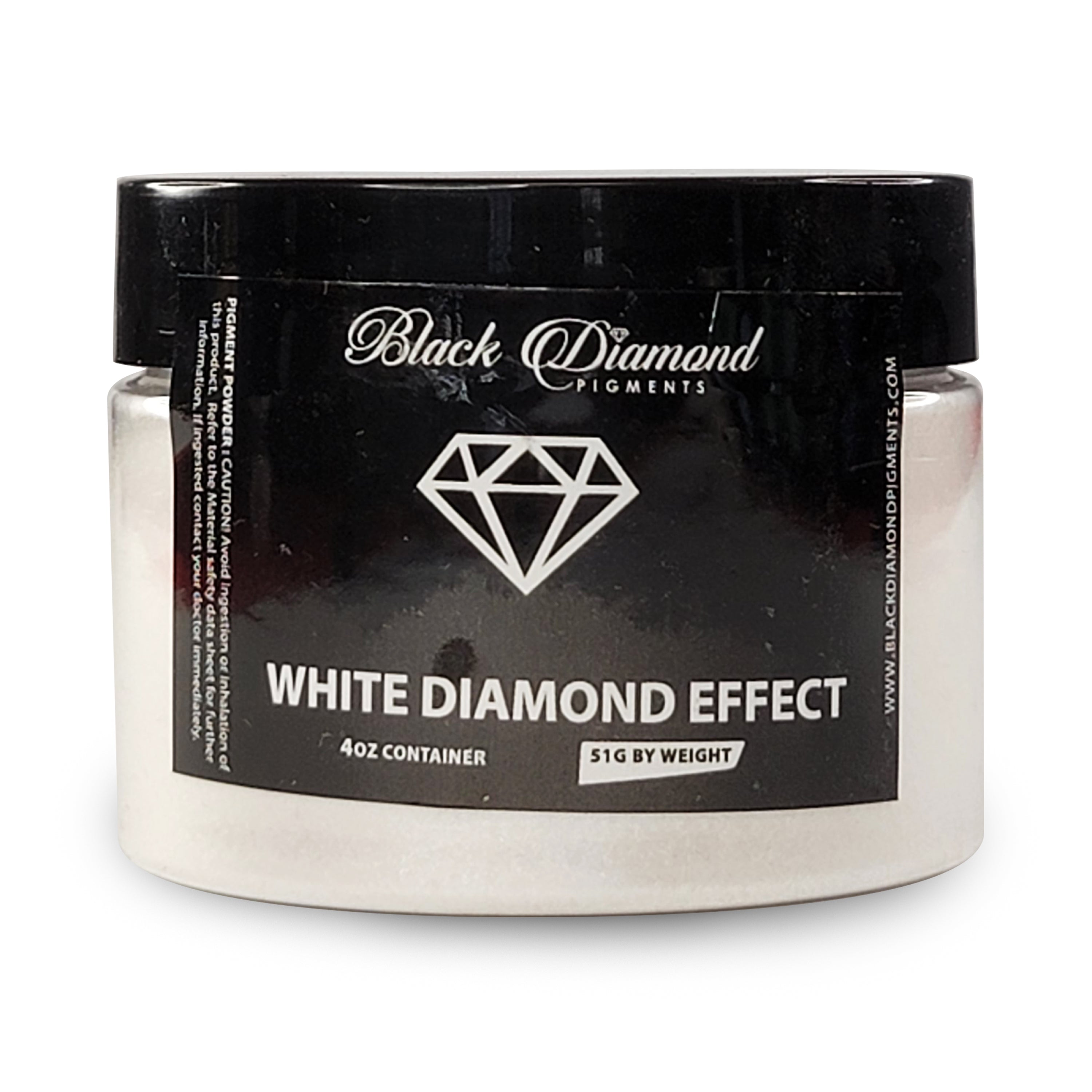Add lustrous White Diamond Effect powder pigment to your paintings, castings, sculptures, stamping, jewelry, river tables etc. with Black Diamond Pigments. If you want a metallic shimmer, apply it dry on top of a tacky surface for unique texture, mix it with another color for an even more unique style.
